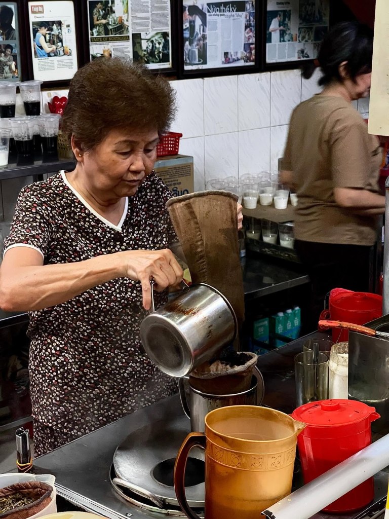 Walking into the shop, the first thing greeting you isn’t a staff member’s smile, but a very distinct scent. It’s not the intense aroma of Arabica in an air-conditioned room. It is the slight smokiness of charcoal, the raw scent of the cloth net that has soaked coffee thousands of times, and the rich creaminess of condensed milk. I call it The Scent of Old Saigon. In the modern year of 2026, when everything is programmed by electronic buttons, this “manual” and somewhat “outdated” flavor becomes a treasure. It reminds us that: Some of the most delicious things must be brewed from human patience, not machines.
