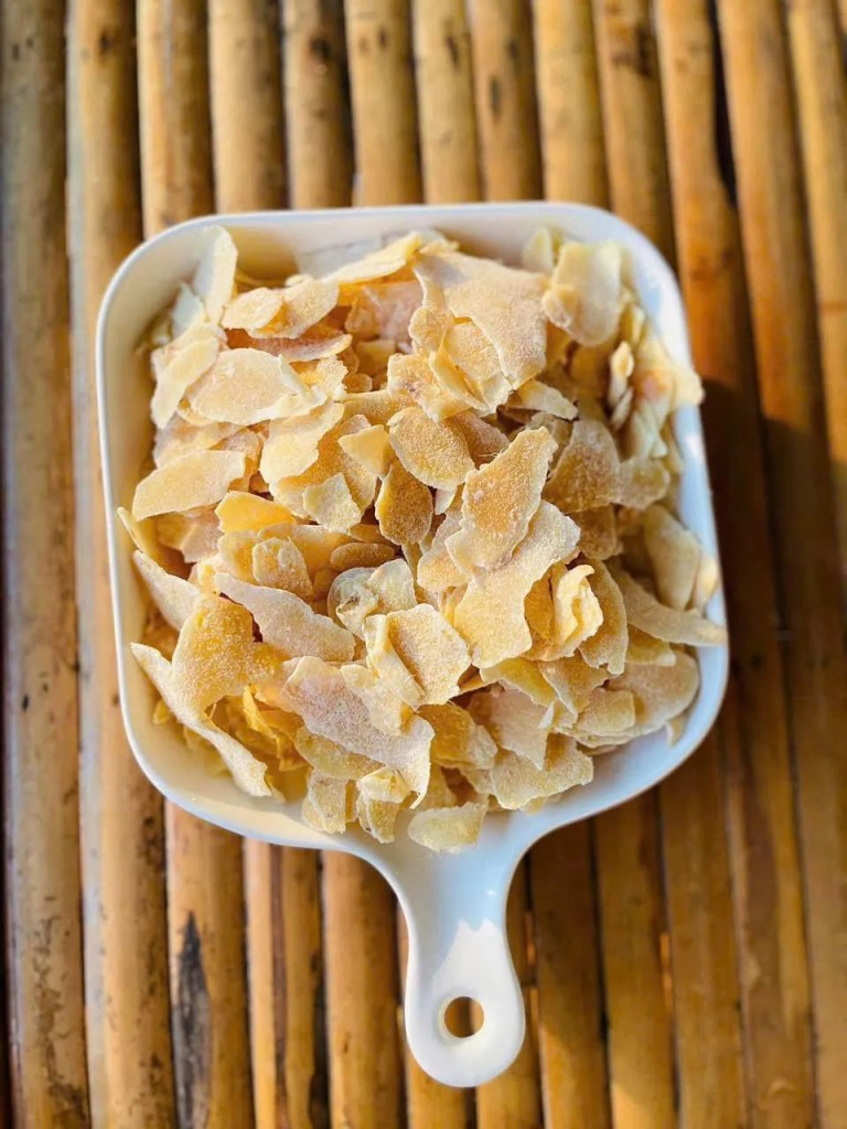 Sunday morning, I woke up a little later than usual. The echoes of last night’s party still lingered, but my mind sought a quiet place. I decided to go to the market, buy a kilo of young coconut, a bit of old ginger. Today, I’m making Jam (Mứt).