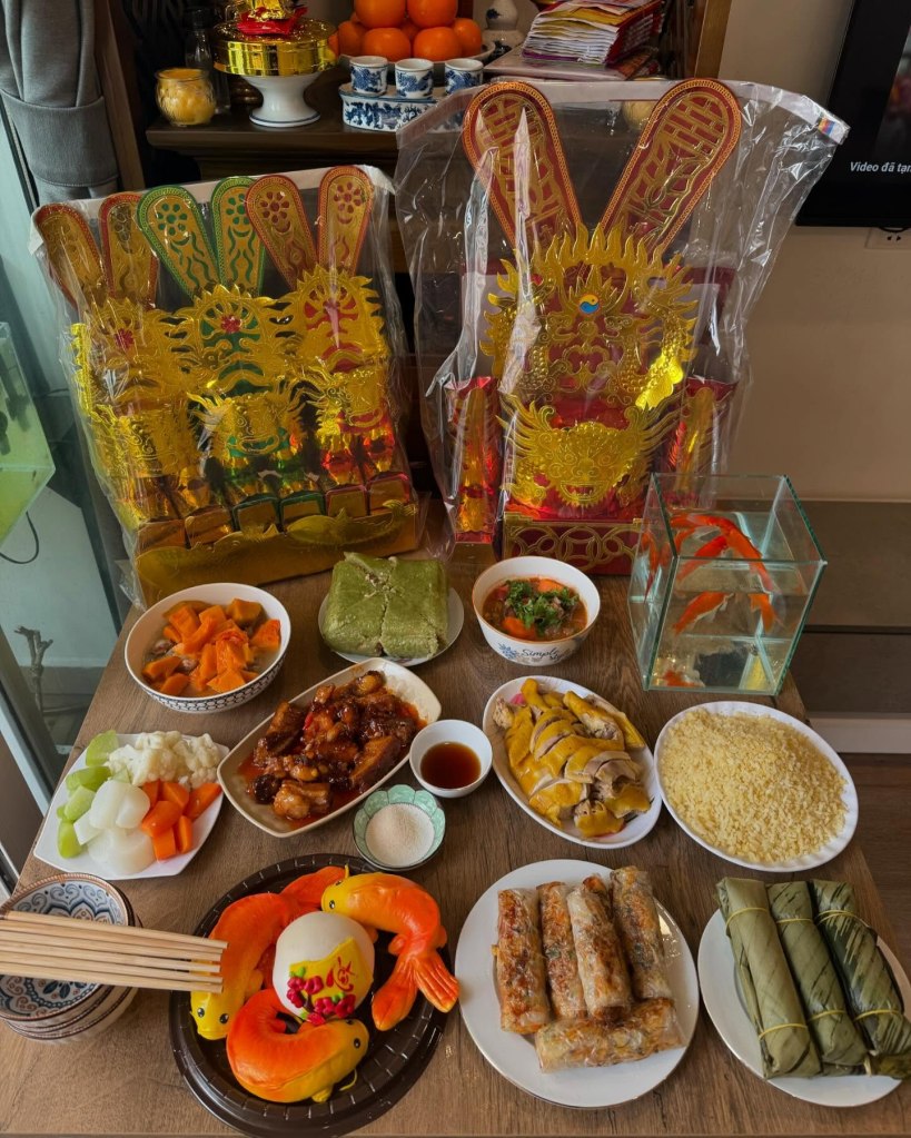 Back then, there were no shiny gas or induction stoves like today. The stove of the past was the Cà Ràng (clay stove), the residence of the 3 Kitchen Gods made of red baked clay. After a year of enduring fire and smoke, the 3 old statues were covered in soot, blackened. On the morning of the 23rd, Mom carefully took them down, placing them by the tree root in the garden to rest (returning them to the earth). Then, she reverently placed 3 brand new statues on the stove pedestal, bright red ceramic, eyes shining. That act of replacing the statues was sacred. It was Mom’s message: “Leave behind whatever was black and sooty from the old year. In the new year, the kitchen must be bright and warm for our family to be harmonious and well-fed.”