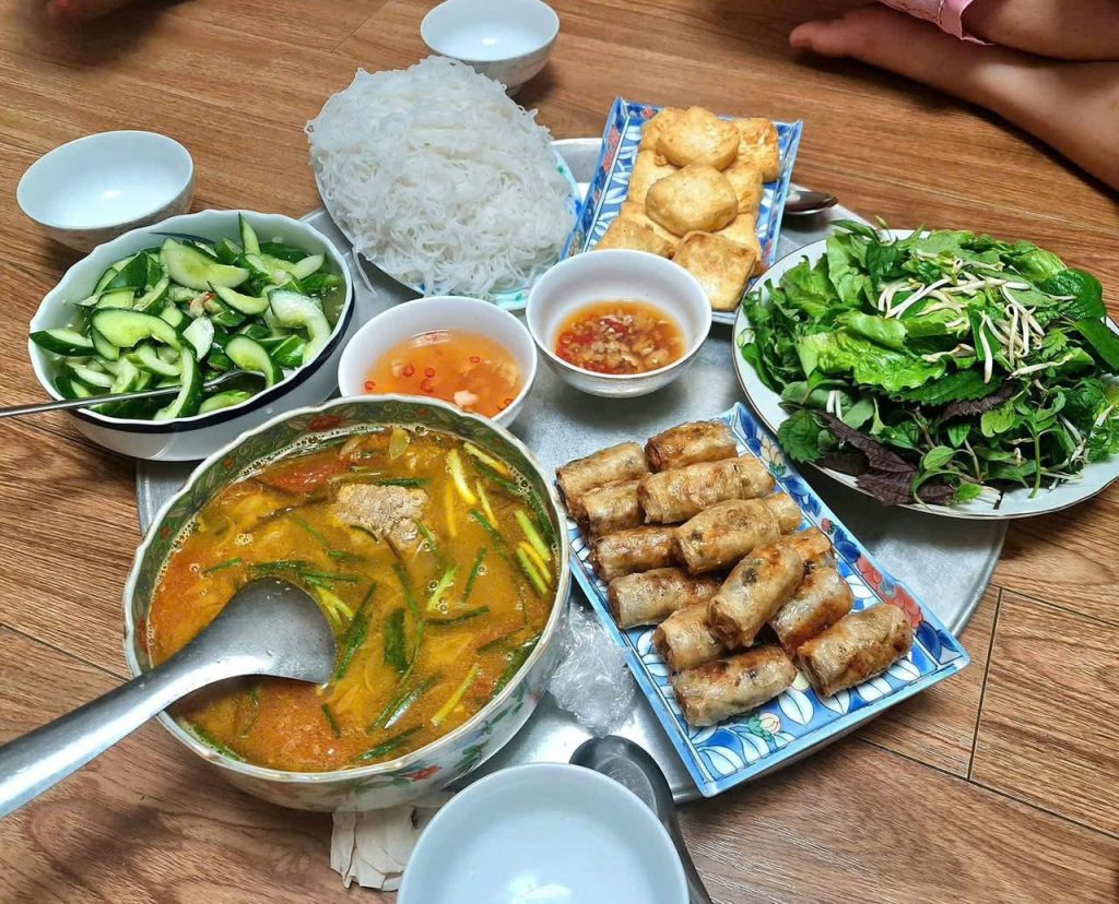 The Circle of Equality & Sharing A circle has no beginning, no end. On a round tray, no one is master, no one is servant. Everyone faces each other. The distance from each person to the center (the fish sauce bowl) is equal. This creates extreme Community. Vietnamese don’t eat individual portions. We share. Picking a piece of meat for Grandma. Ladling soup for the child. That act of “picking for each other” is the invisible emotional thread. It teaches us observation: See Dad likes fish, save it for him. See Mom looks thin, give her the lean meat. The round tray teaches us the first life lessons on Sharing and Yielding.